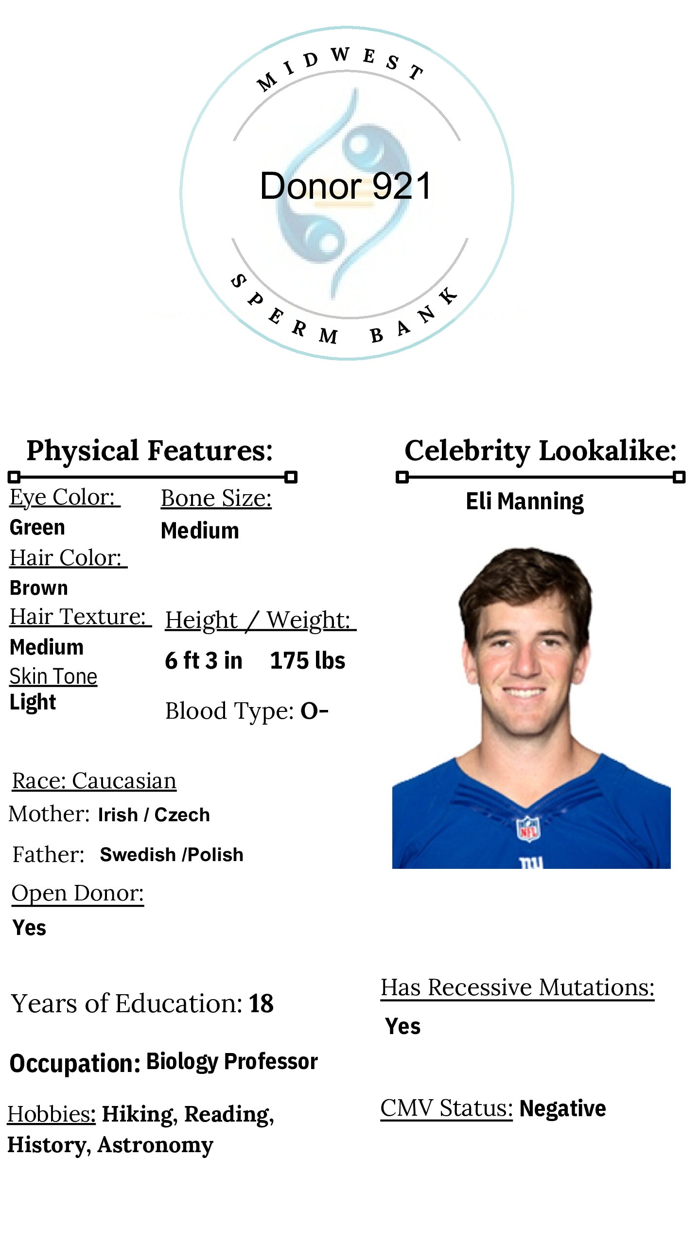 Extended Donor Profiles have a more in depth look into the Donor’s family history, the Donor’s health, and personal characteristics.